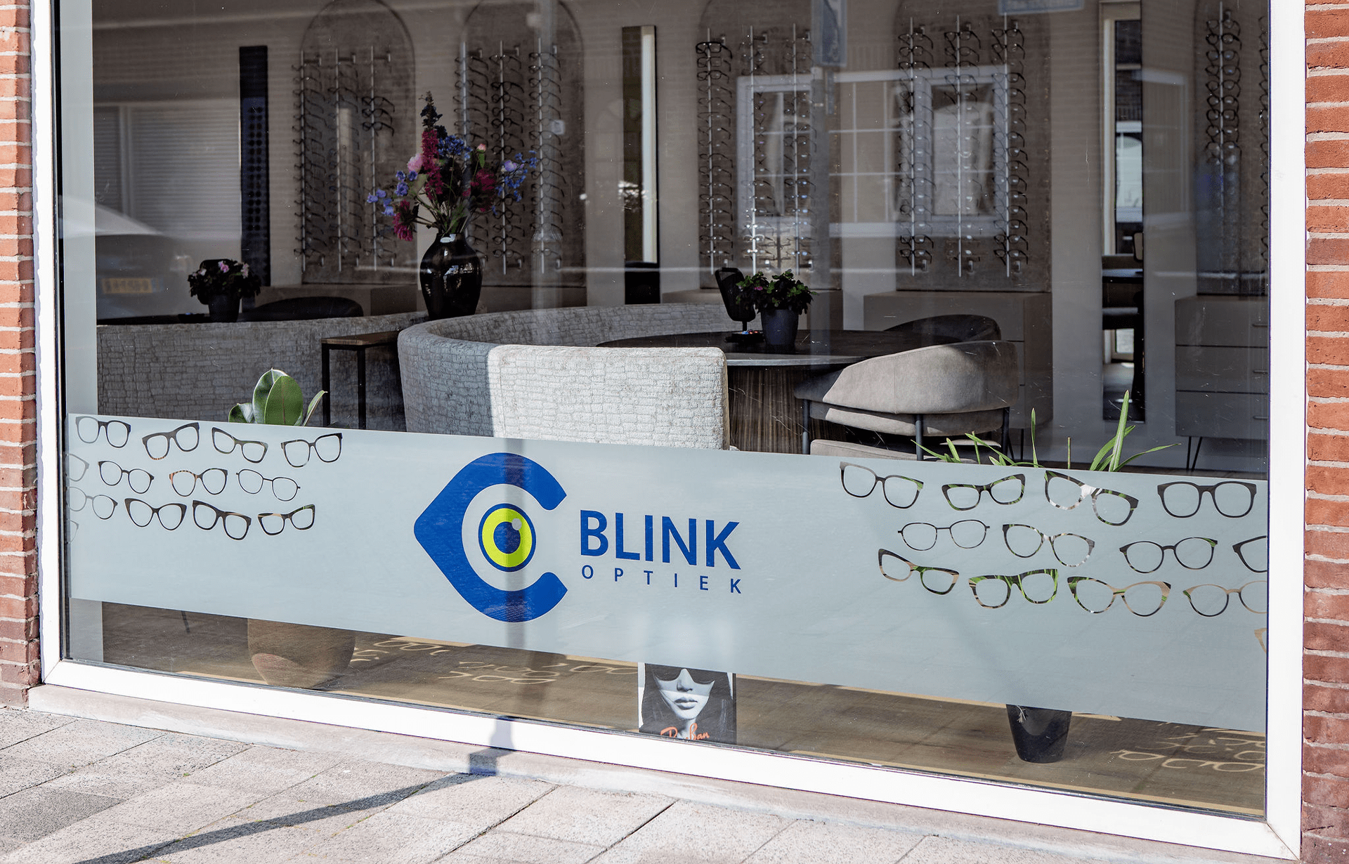 Om het persoonlijke en toegankelijke gevoel van BLINK Optiek te versterken, kozen we voor zachte zandkleuren en groentinten. De blauwe accenten geven een subtiele indruk van betrouwbaarheid en deskundigheid.